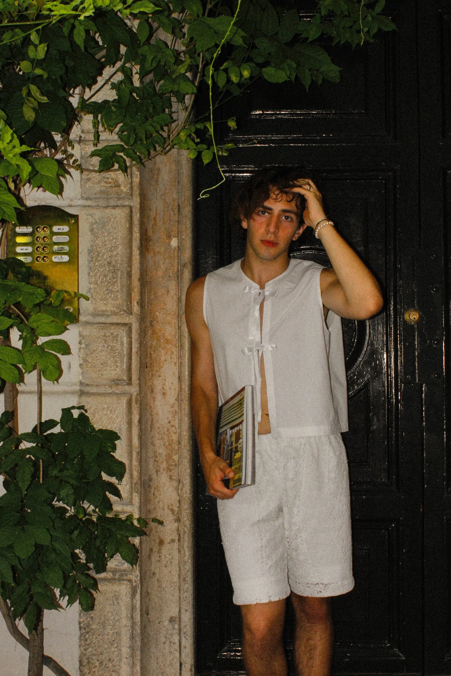 Short mi-cuisse en tissu crocheté, coupe fluide et élastiqué à la taille afin de s’adapter facilement à la morphologie.